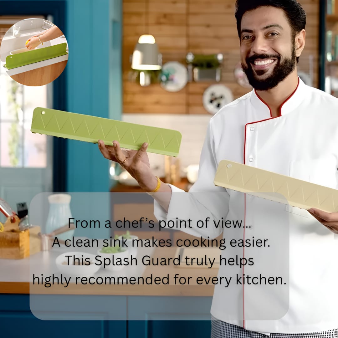 Keep your kitchen counters fresh and spotless with the Sink Guard. Designed with a smart anti-splash shape, it blocks water spray around the faucet and directs it back into the sink — no more messy puddles
